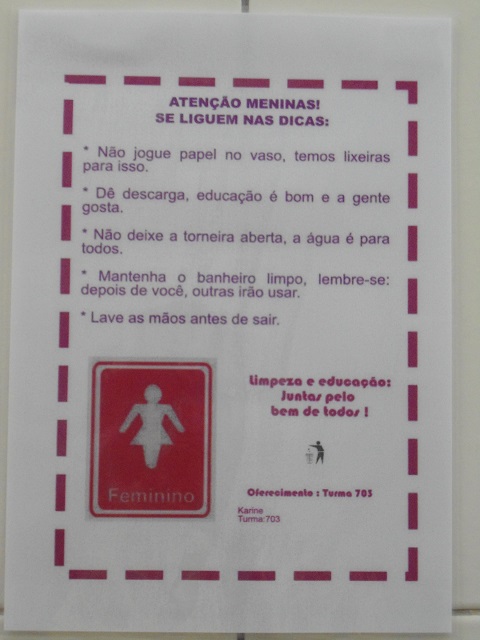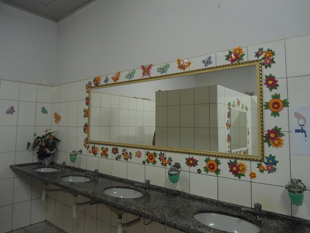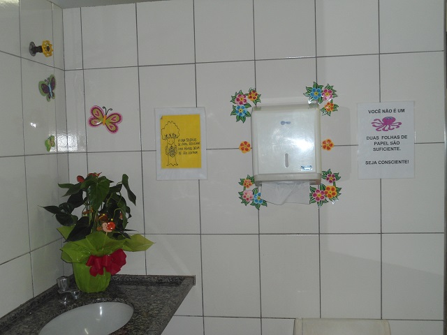 Após a leitura do “Livro do Diretor: espaços e pessoas”, capítulo “Banheiros que educam”, as alunas do 7º semestre do Curso de Licenciatura em Pedagogia, disciplina de Princípios e Métodos da Administração Escolar levaram a risca as orientações didáticas e remodelaram o banheiro feminino da Instituição. Além de limpo, agradável, um espaço que realmente educa.