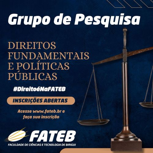 O Coordenador do curso de Direito da Faculdade de Ciência e Tecnologia de Birigui (FATEB), no uso de suas atribuições, torna público o presente Edital de abertura de inscrições para o Grupo de Pesquisa em Direitos Fundamentais e Políticas Públicas no período de 11 a 20 de Março de 2024.