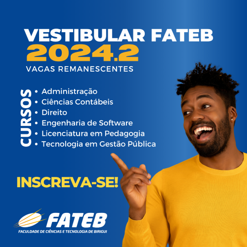 Esta é a sua oportunidade de fazer parte da comunidade acadêmica da FATEB e trilhar um caminho de sucesso em sua carreira. Inscreva-se agora e esteja preparado para conquistar seus sonhos!