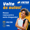 No dia 05 de agosto, às 19h, a FATEB (Faculdade de Ciências e Tecnologia de Birigui) retorna as aulas do segundo semestre de 2024. Preparem-se para um semestre cheio de aprendizado, crescimento e oportunidades. É o momento de reencontrar colegas, professores e continuar a jornada rumo ao sucesso acadêmico e profissional.