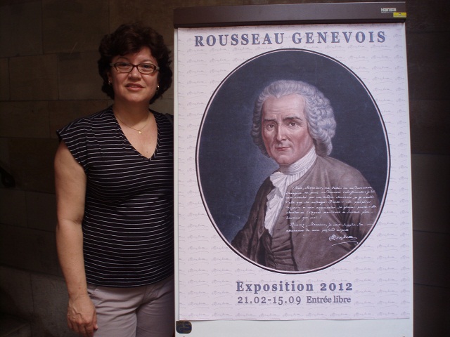 Acompanha a Professora Áurea, a Professora Mestre Márcia Elaine Catarin Vignoto. Estas docentes do Curso de Pedagogia de nossa Instituição participaram também das atividades organizadas em comemoração ao Tricentenário do nascimento de Jean-Jacques Rousseau (1712-2012).
